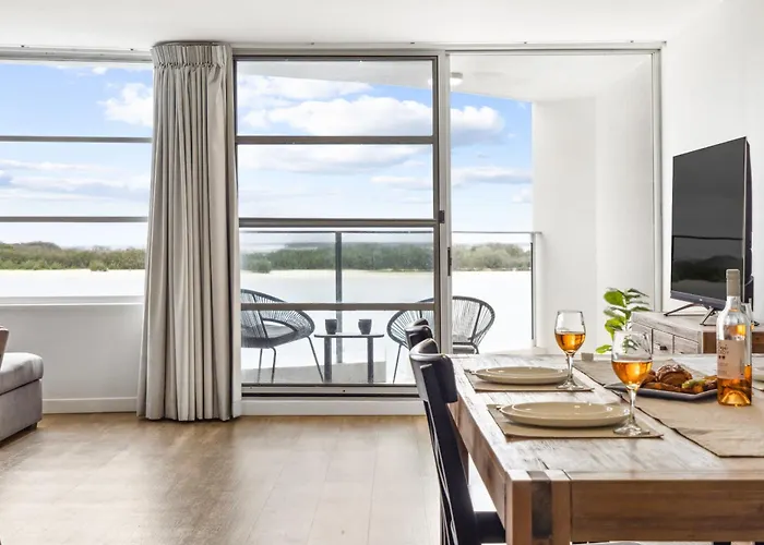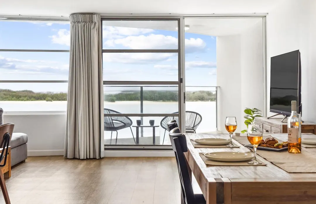 L'Appartamento Pumicestone Passage Waterfront Escape Caloundra è situato a soli 5 minuti a piedi da 26 Degrees e offre una piscina.